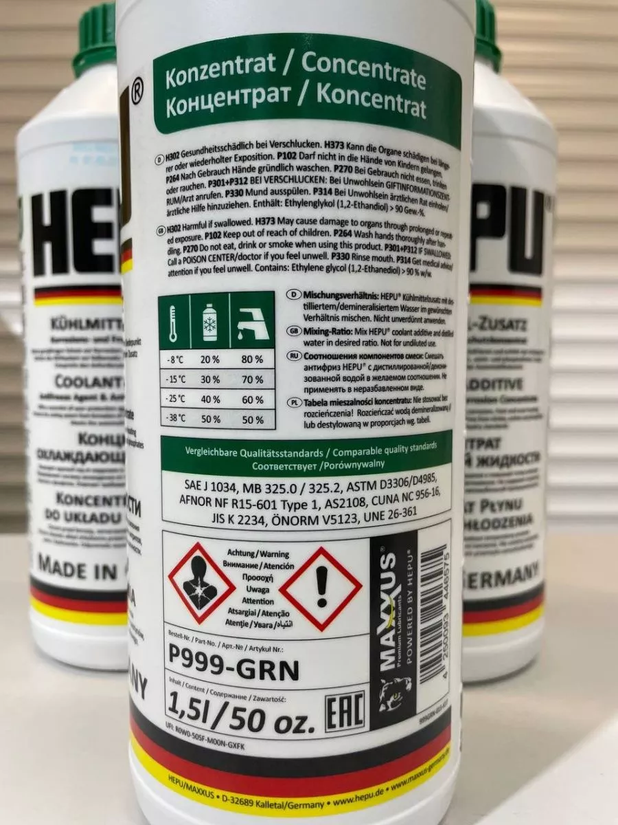 Антифриз зеленый HEPU G11 1,5л (концентрат) P999GRN